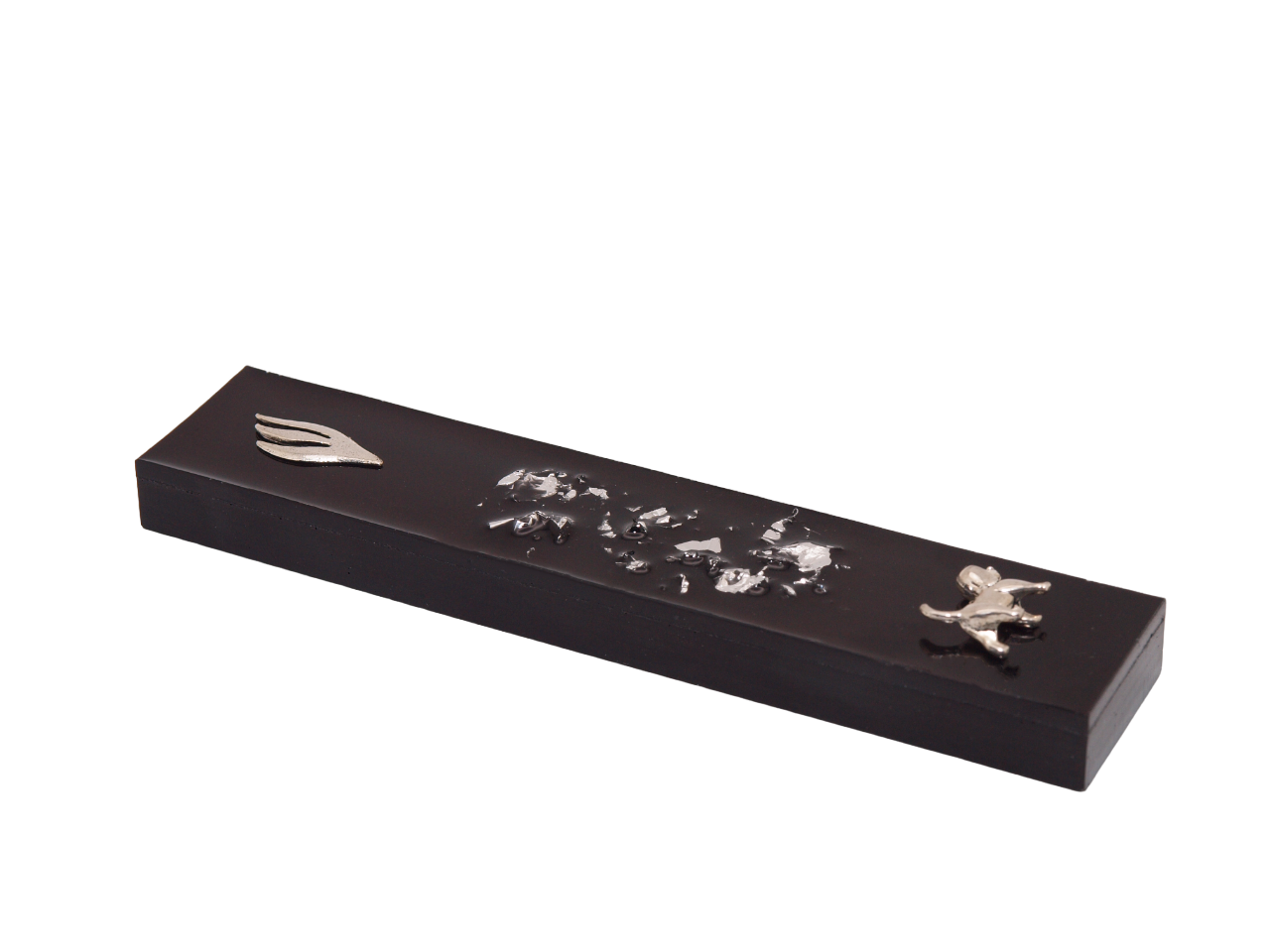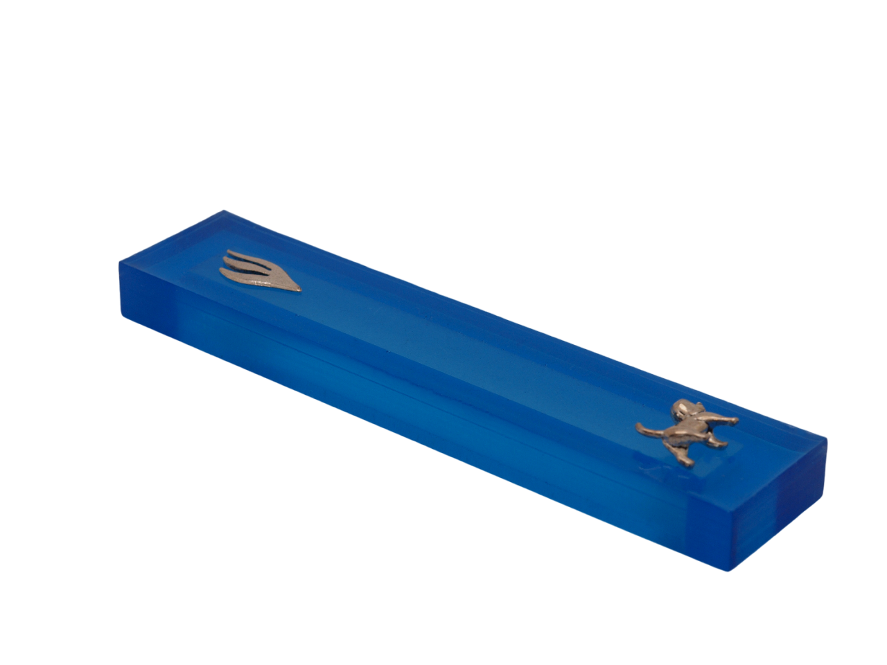 Celebrate the loyal companionship and timeless tradition with our artisan-crafted mezuzah case, a harmonious blend of faith and canine charm. Available in vibrant black, blue, or pink resin, each adorned with shimmering silver flakes, this unique piece showcases an Antique Silver Dog Sign, expertly crafted from Zinc Metal Alloy, paired with a Silver Shin Letter.