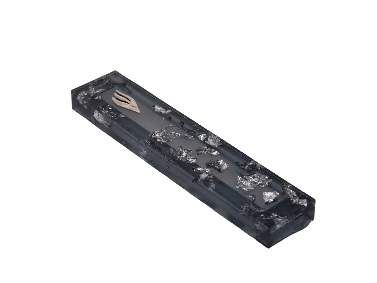 These exceptional Mezuzah cases are expertly crafted from crystal-clear resin, enriched with a hint of black, and adorned with glistening silver flakes. The result is a captivating fusion of sophistication and uniqueness.
